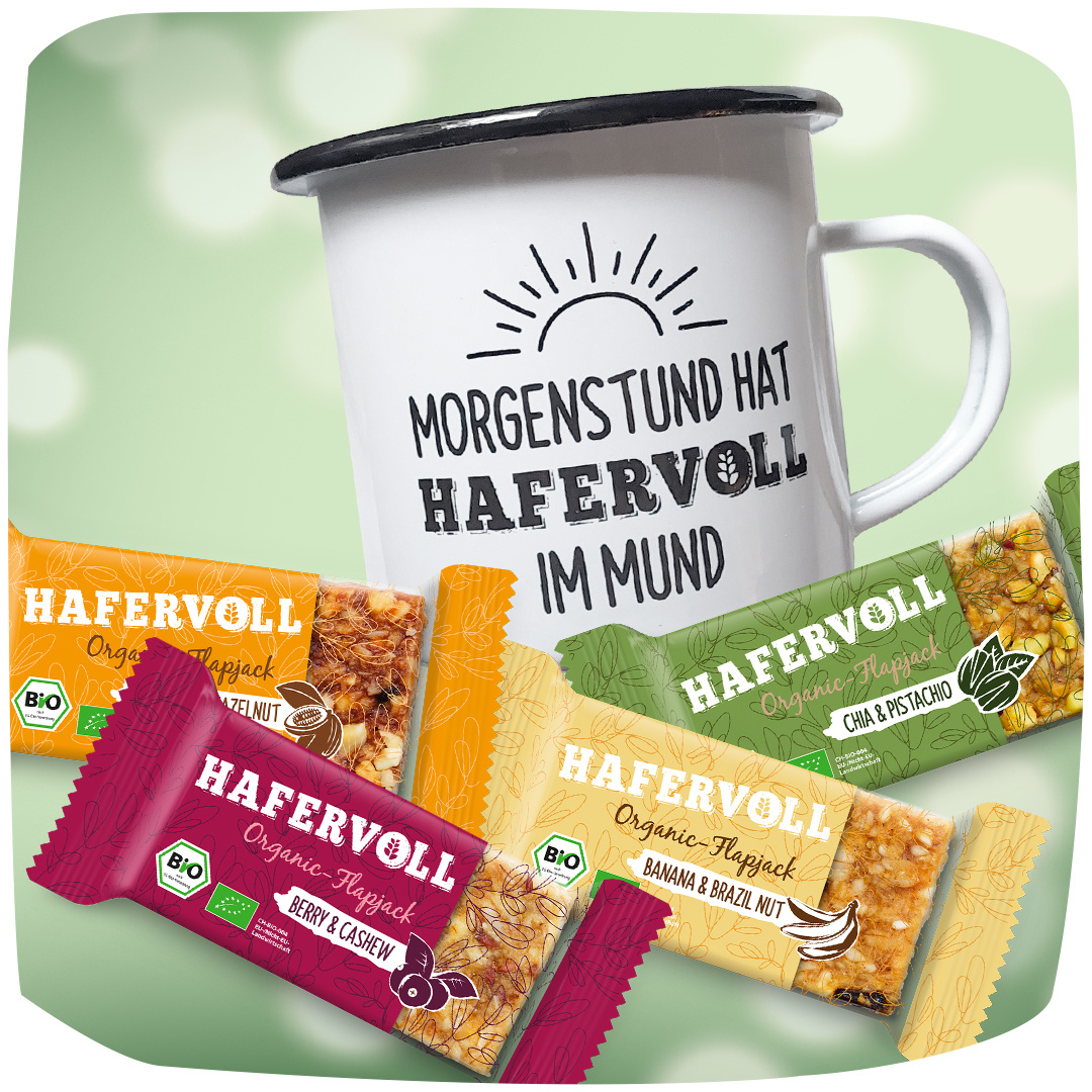 Tag 5: 5 Gewinnpakete mit je einer HAFERVOLL Tasse & 4 Organic Flapjacks